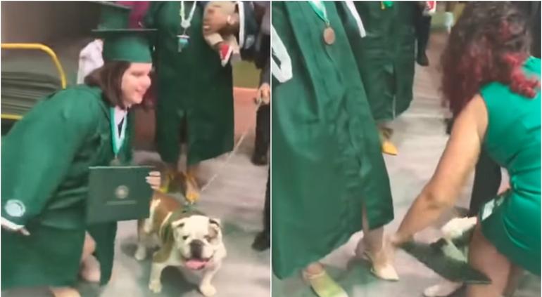 Mujer recibe diploma de universidad y perro intenta devorarlo (VIDEO)