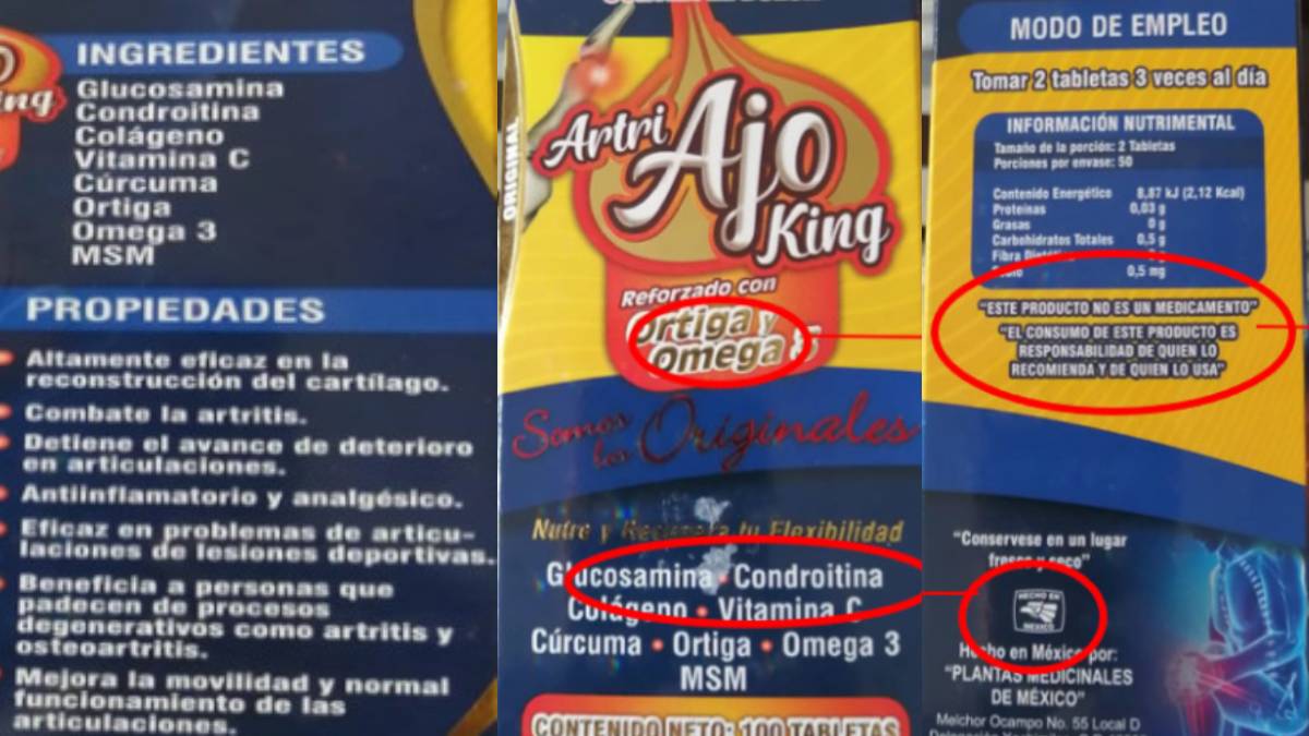 Tras vigilancia sanitaria, la Cofepris determinó que “Artri Ajo King” lleva como ingredientes dexametasona y metilprednisolona, corticosteroides nunca descritos en su etiqueta de contenido: “posee propiedades que deben contar con registro correspondiente”.