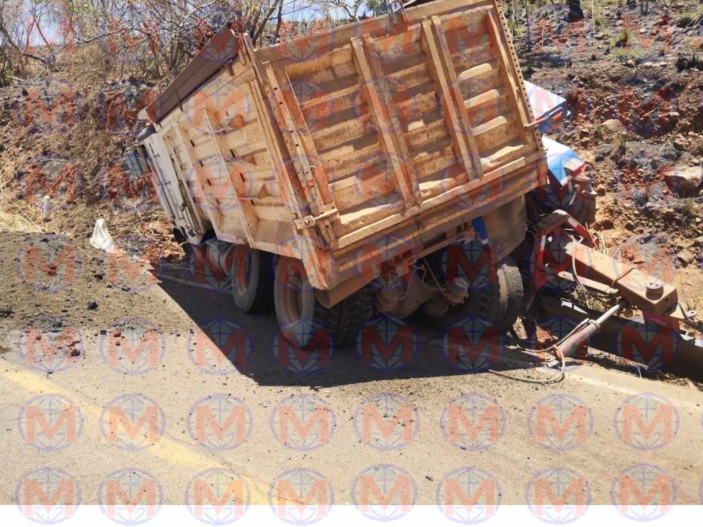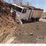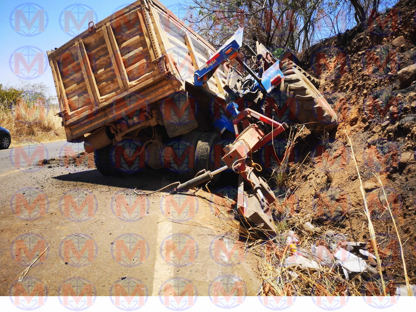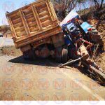 El percance ocurrió entre los poblados de San Luis de Lozada y Colonia Moderna, tras de que el chófer de una góndola de 14 metros nada pudo hacer por evitar chocar por alcance contra un tractor que circulaba por el mismo sentido y en una pendiente prolongada luego de que al querer frenar, la unidad traía los frenos ya sobrecalentados.