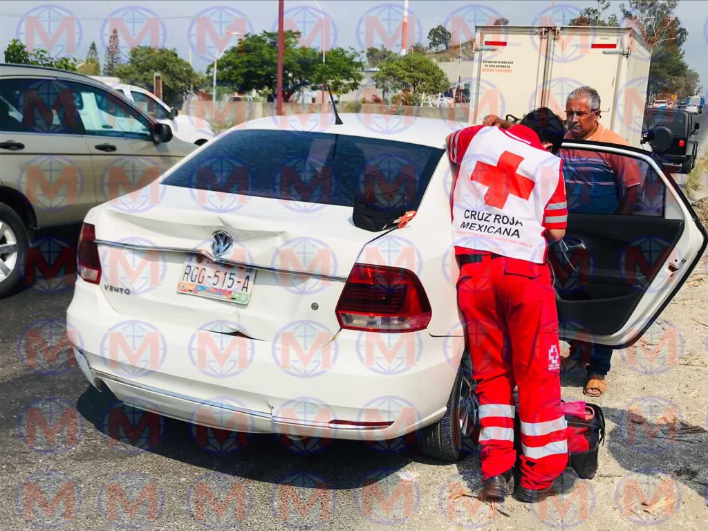 Paramédicos de Cruz Roja brindan la atención médica en el lugar a la mujer quien presentaba solo dolor.