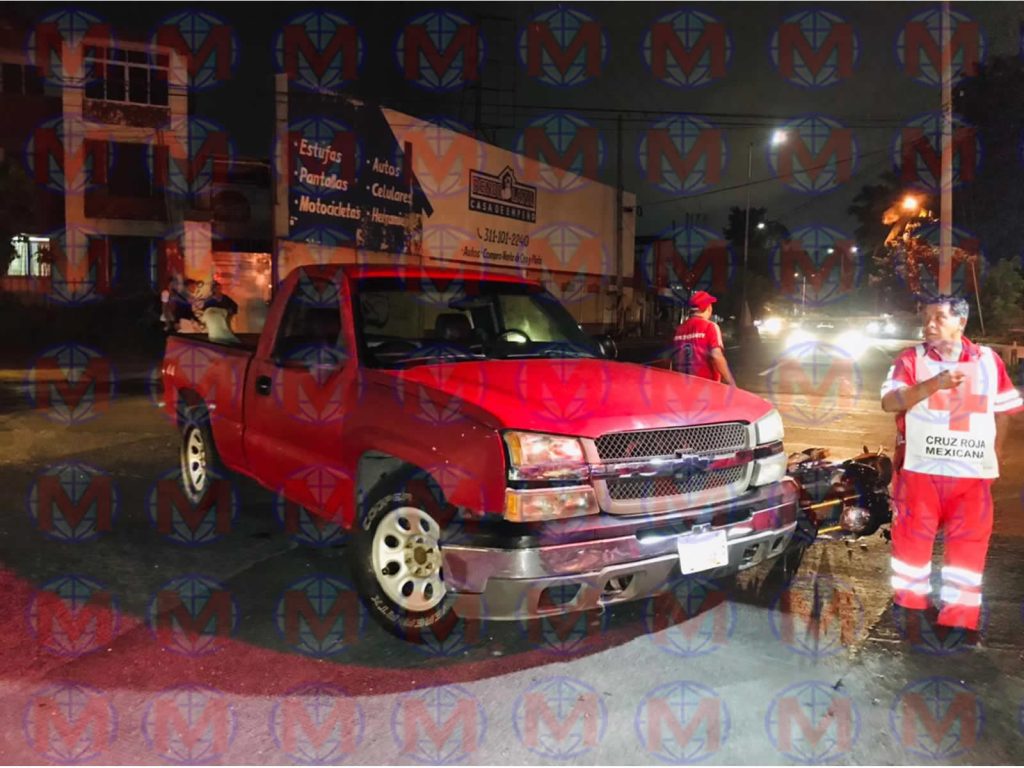 Los hechos ocurrieron en el cruce de la avenida Insurgentes y la calle Ixtlán, de Infonavit los Frenos, el conductor de una camioneta de la marca Chevrolet tipo Silverado en color rojo, circulaba con dirección a la salida a Guadalajara, al llegar a dicho cruce intenta dar una vuelta en U para incorporarse a los carriles con dirección al centro de Tepic, momento que termina por hacerle el corte de circulación a un motociclista abordo de una Vento en color negro, tras el choque el motociclista cae a la cinta asfáltica resultando lesionado.