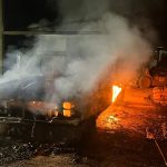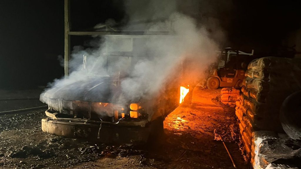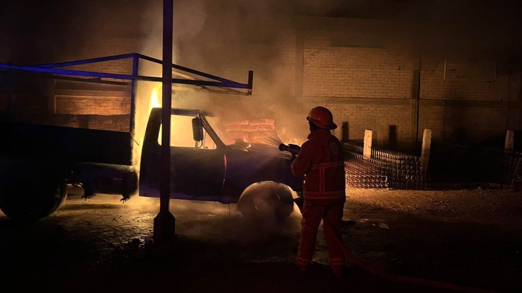 Tepic, Nayarit; 17 de octubre de 2023.- La Secretaría de Seguridad y Protección Ciudadana a través de los Bomberos de Nayarit sofocan el incendio de una camioneta en la carretera Guadalupe Victoria – San Blas, sobre el kilómetro 16, como referencia a la altura de la ferretería “Materiales del Pacífico”.