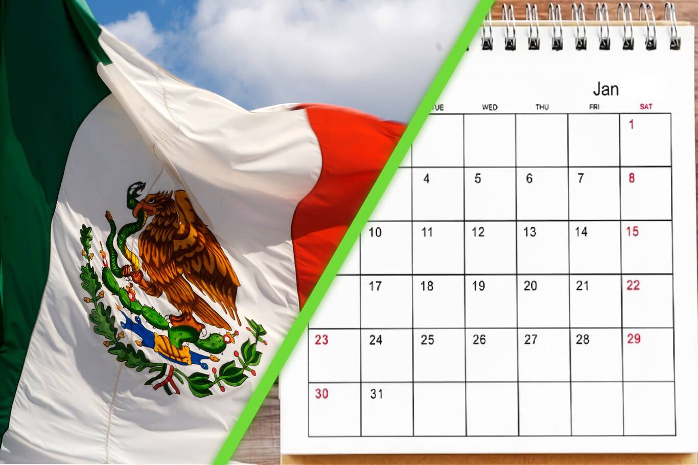 Los días feriados oficiales en México, según el calendario oficial, son los siguientes: