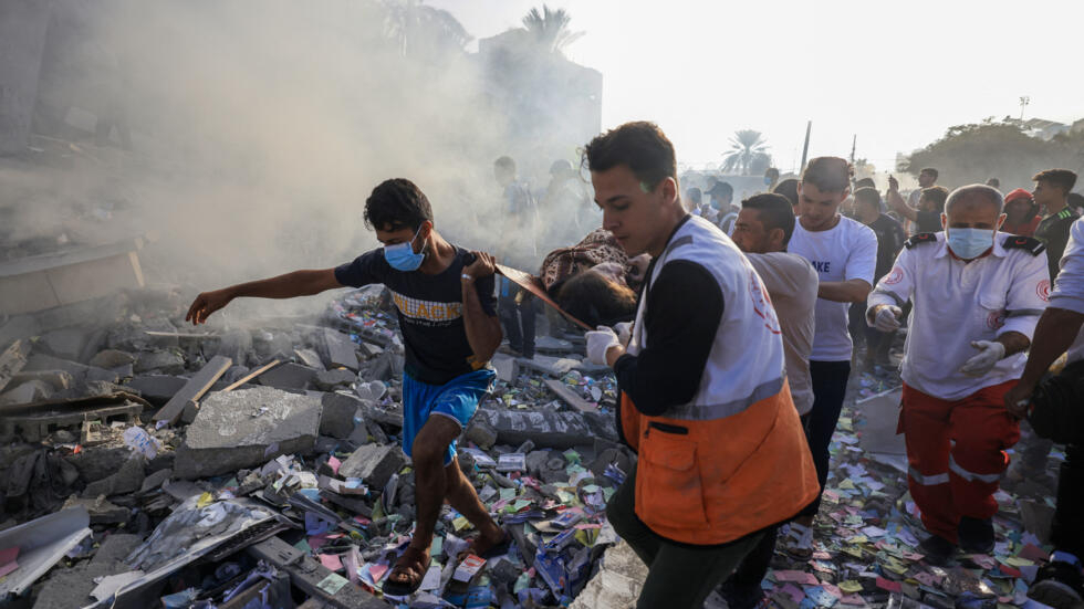Ataques aéreos israelíes causaron ayer la muerte de más de 60 palestinos en el Sur y Centro de la Franja de Gaza, incluido uno que impactó en una zona que Israel había declarado “zona segura” y que tenía a miles de personas desplazadas.