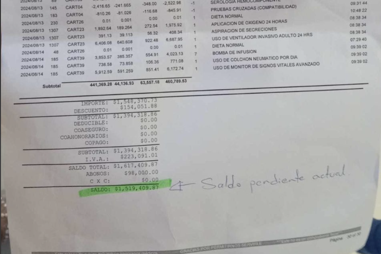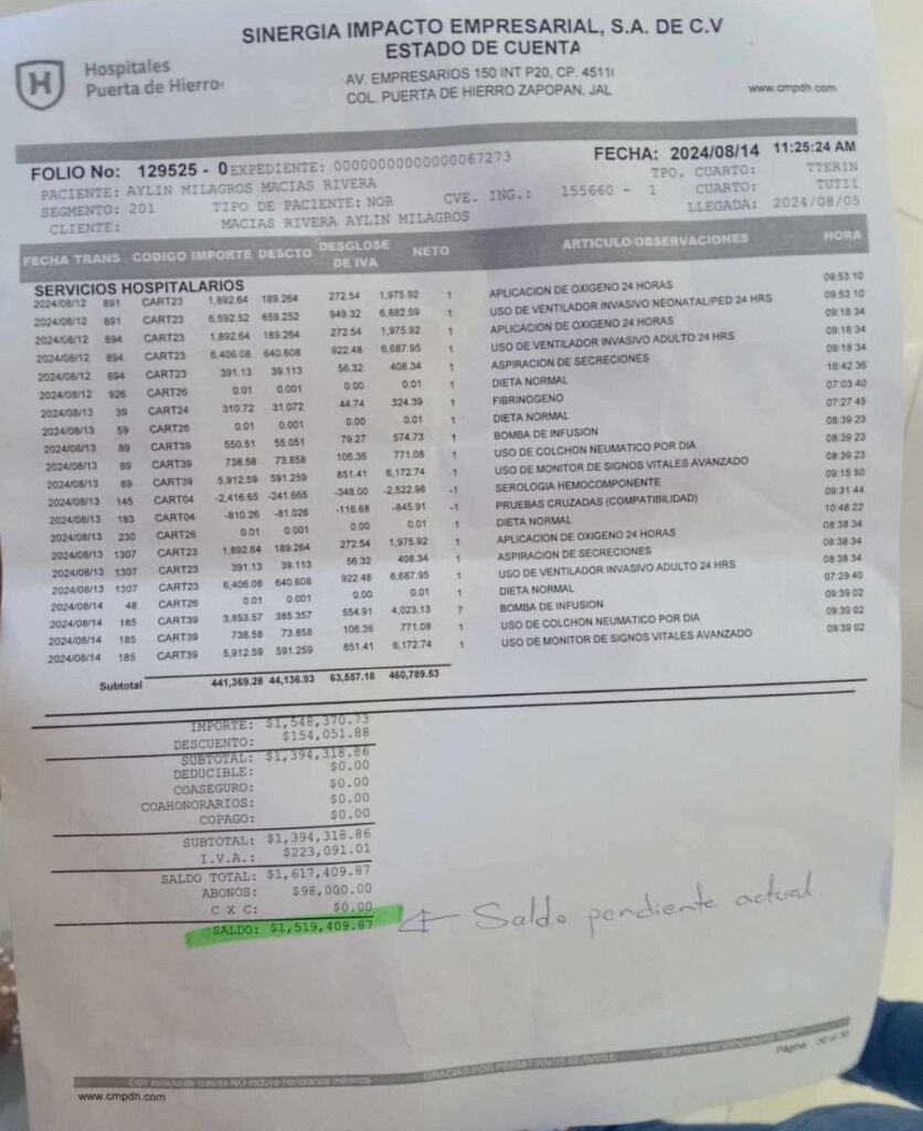 Tras fallecer la niña, en la caja del hospital privado le dijeron que de no cubrir la cantidad de más de millón y medio de pesos, no le entregarían el cuerpo y el certificado de defunción.