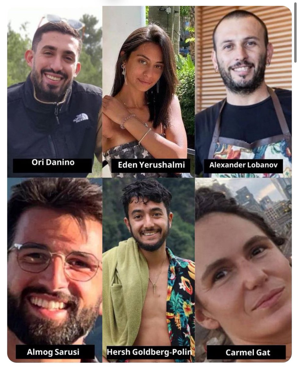Cinco de los fallecidos -identificados como Eden Yerushalmi, de 24 años, el estadounidense-israelí Hersh Goldberg-Polin de 23, Alexander Lobanov, de 32 años, Almog Sarusi, de 27, y Ori Danino de 25- fueron raptados durante el ataque de Hamás en el festival NOVA el pasado 7 de octubre.