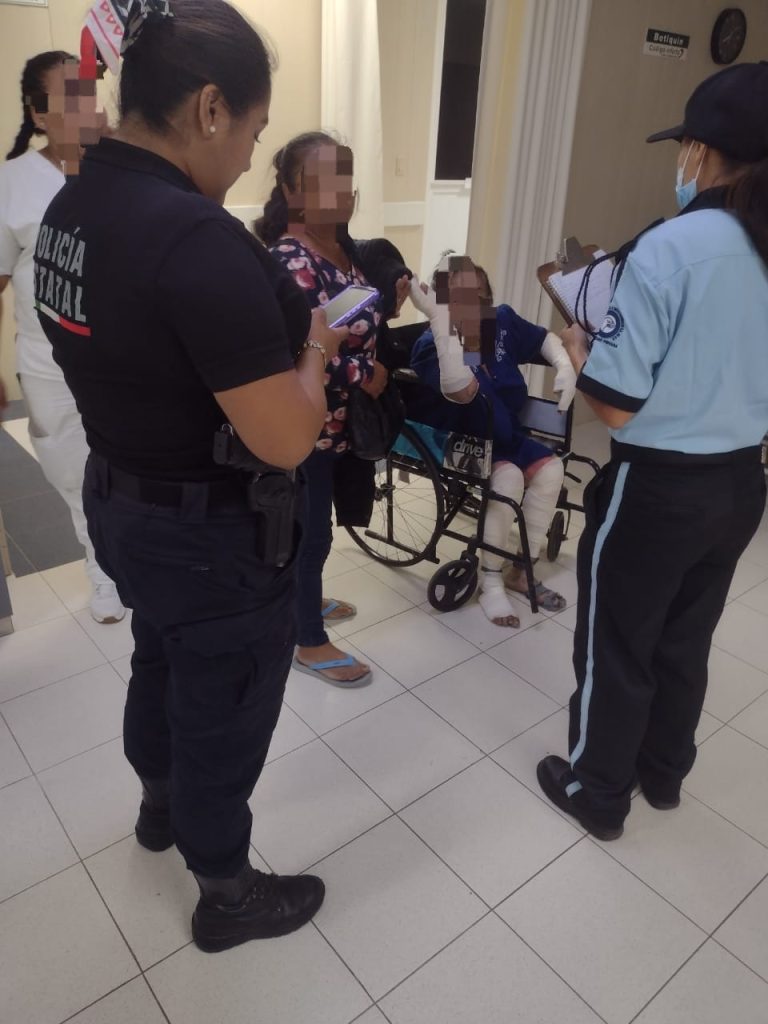 Al trasladarse al sitio, los agentes encontraron una camioneta Toyota Hilux que transportaba a una mujer de 80 años, quien sufrió quemaduras en un accidente en su domicilio, donde se encontraba gasolina para su venta, siendo acompañados por los agentes. La afectada intentaba encender una veladora cuando se produjo la explosión.