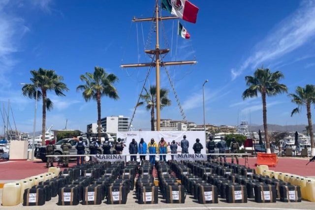 En un comunicado, el Gabinete de Seguridad federal indicó que durante patrullajes de vigilancia marítima y aérea, con apoyo de embarcaciones y unidades aéreas. personal naval identificó a 56 millas náuticas al sureste de Cabo San Lucas, una embarcación menor con tres motores fuera de borda y cuatro tripulantes a bordo.