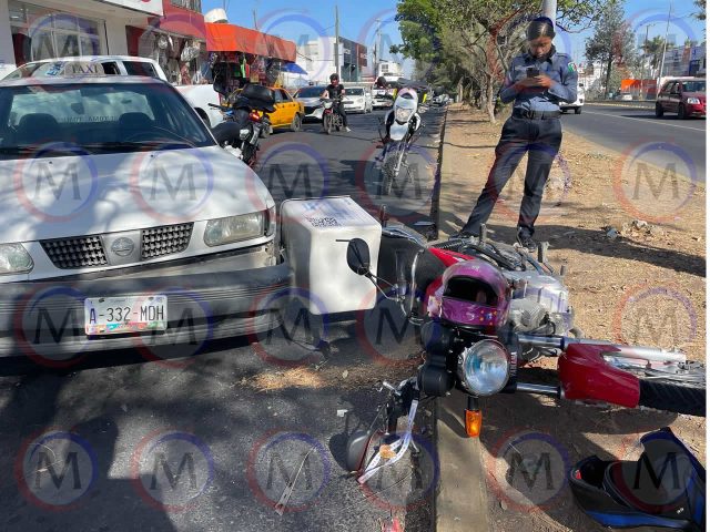 Fue el chofer de un taxi en color blanco, quien en su intento por cambiar de carril, termina por impactar a la pareja de motociclistas cayendo estos últimos sobre la cinta asfáltica.