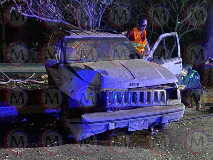 Se trata del conductor de una camioneta Jeep en color blanco, el cual circulaba a exceso de velocidad, sin embargo, al llegar al cruce antes mencionado, pierde el control del volante, derrapa y se impacta contra un árbol, dejando la unidad destrozada.