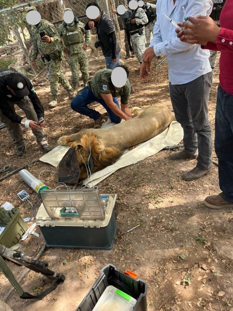 En el lugar, las autoridades localizaron dos ejemplares de la especie denominada Panthera Leo, comúnmente conocida como león, los cuales fueron trasladados al Parque Zoológico Moroleón, ubicado en el municipio de Moroleón, Guanajuato.
