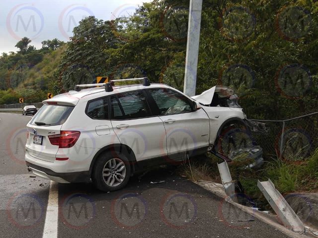COMPOSTELA.- Un aparatoso accidente se registró en la autopista que conduce de Compostela hacia El Capomo, donde participa una camioneta de la marca BMW en color blanco.