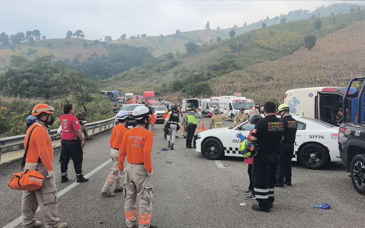 Al menos dos muertos y 22 heridos fue el saldo que dejó una volcadura de un autobús que trasladaba a un grupo de personas indígenas mayas tzotzil y tzeltal, en la autopista de San Cristóbal de las Casas, Chiapas.