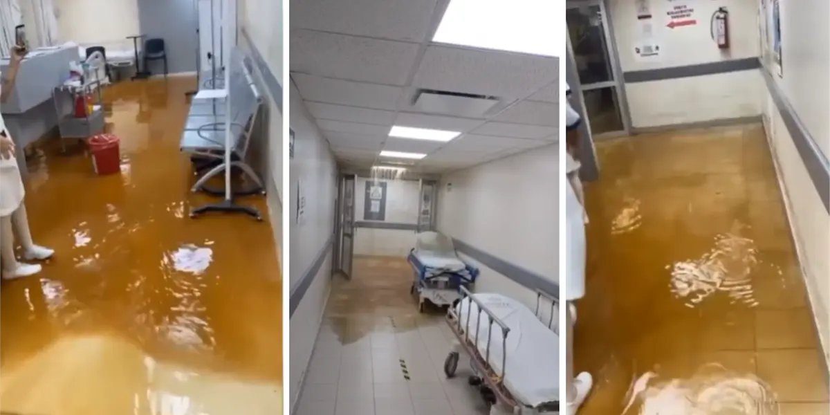 Los encharcamientos se presentaron en las áreas de Urgencias, Laboratorio y Banco de Sangre. En las imágenes y videos que circularon en redes sociales se ve un pasillo completamente inundado y en otro, agua cayendo del techo.