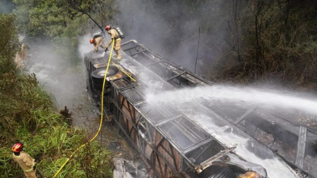 Inicio Internacional Autobús cae a un barranco y se incendia en Ecuador; hay 11...