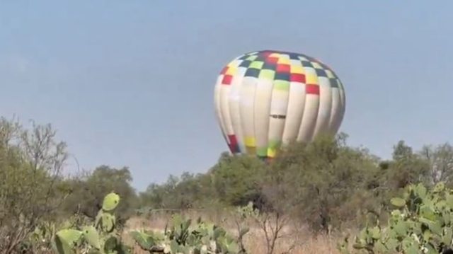 Un globo aerostático aterrizó de emergencia en la Zona Arqueológica de Teotihuacán, en el Estado de México (Edomex), la mañana del martes 21 de abril de 2026.
